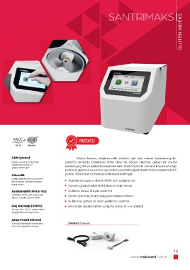 Ekran ve kontrol kartları      elekten geçirilir ve gluten kalitesi belirlenir. Santrimaks iki numune kapasiteli olup